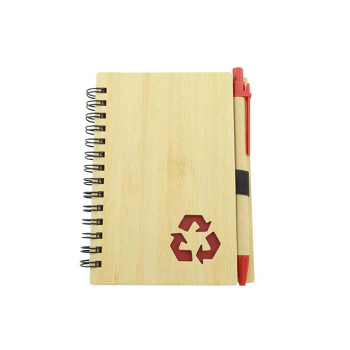 Agenda bambú con esfero ecológico y con 80 hojas rayadas Anillo doble 0 Azul/Rojo/Verde/Negro sujeto disponibilidad