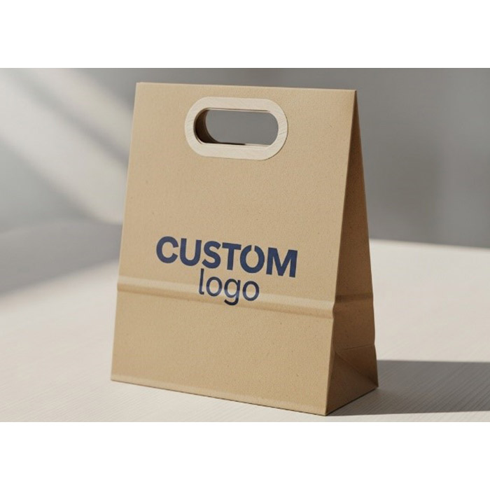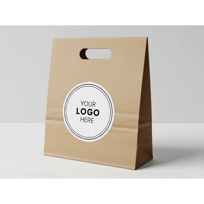 Bolsas de papel Kraft reciclable con manija troquelada de alta resistencia Buena presentacion para los Productos ideal regalos Obcional Personalizaci?n: Estampado a 1 tinta.